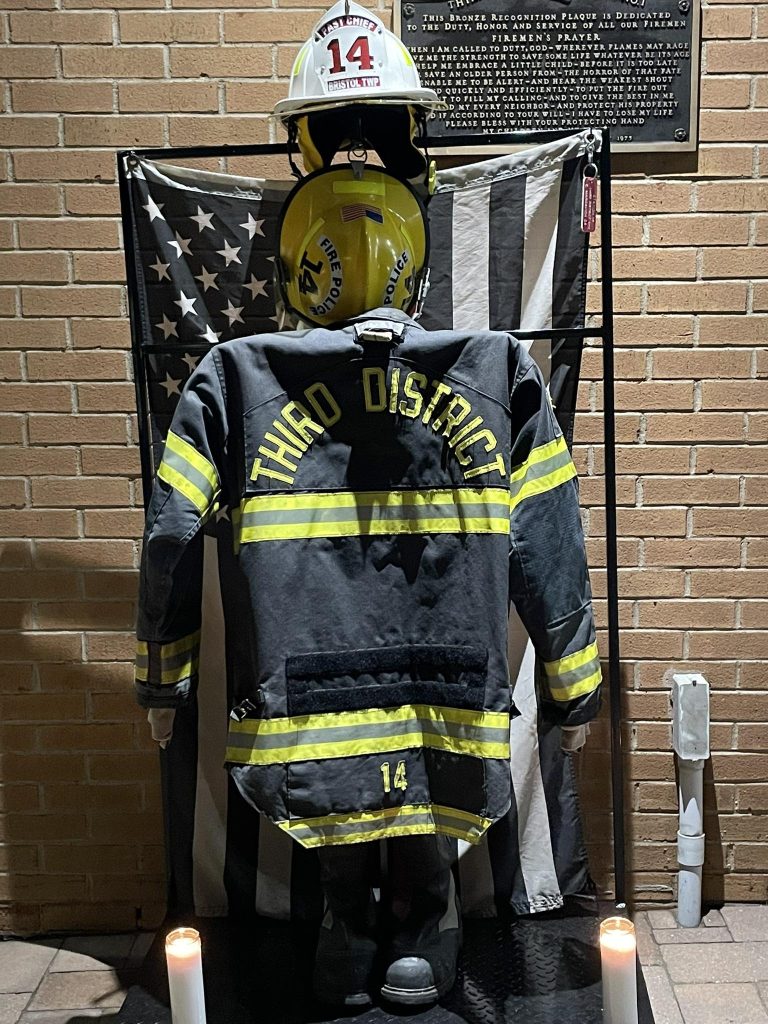 A memorial has been placed in front of Station 14 to honor Chief Margavich. The community is welcome to visit at any time to pay their respects.